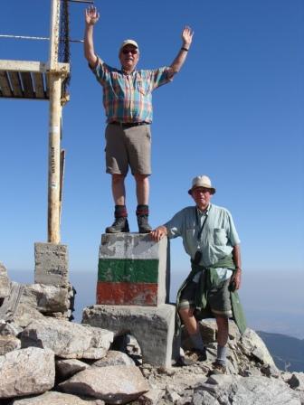 Mountain-high spirits, mutual congratulations, and lots of photos. Our guide Rumen, Didi Oprenov (Pastor of Sofia Baptist Church), my elder brother Lewis and I celebrate!